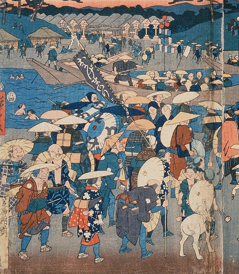 Figure 5. Detail from Utagawa Hiroshige’s (1855) Ise sangū miyagawa no watashi (伊勢参宮・宮川の渡し), woodblock print.