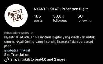 Launched on Instagram in 2021, Nyantri Kilat can be described as a new form of digital pesantren (Islamic boarding school) in Indonesia. Amid the pandemic’s social restrictions, Nyantri Kilat emerged as a response to the longing for the traditional pesantren learning environment, which could no longer function as usual due to restrictions on face-to-face gatherings. Moreover, the platform sought to share and expand the unique experience of pesantren learning with a more general public, including young, urban social media users. Nyantri Kilat provides online Islamic studies using a method adapted from the traditional pesantren model: based on classical texts and taught by pesantren alumni.