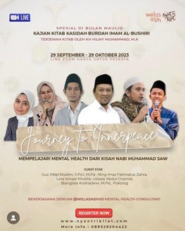 “Journey to Inner Peace: Kajian Kitab Kasidah Burdah Imam Al-Bushiri” (A Study of the Kasidah Burdah by Imam Al-Bushiri) — this was the title of a poster released by Nyantri Kilat, an Islamic learning platform in Indonesia. During the celebration of Mawlid Nabi (Prophet Muhammad’s birthday) in 2023, Nyantri Kilat offered an online program focusing on the Burdah, a classic collection of devotional poems from the seventh century written by Imam Al-Bushiri of Egypt. Uniquely, the program integrated a focus on mental health, a concern particularly relevant to the younger generation on social media, and a topic that is often overlooked in Indonesia, broadly speaking. By collaborating with a mental health consultant, the program aimed to explore mental well-being through the story of the Prophet Muhammad.