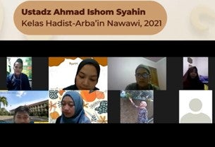 These sessions were conducted online through scheduled teleconferences. The meetings were structured according to the bandongan (class style learning) method commonly practiced in pesantren, in which the teacher explains the material while students listen and take notes. In its promotions, Nyantri Kilat guaranteed that the teachers in its programs are ustadz and ustadzah, religious teachers who “bersanad jelas” or possesses a verifiable chain of knowledge, connecting them to the pesantren's scholarly tradition. These teachers are alumni of prominent pesantren in Indonesia.