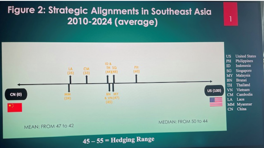 The thirty year timeline of the AOCAI ends in 2024, just before the return of Donald Trump to the White House. We wager that the Trump administration’s approach to Southeast Asia, in particular its tariff policies, is likely to accentuate the region’s strategic drift away from the U.S., toward China. This is not to say that there will not be efforts on the part of regional states to maintain relations with the U.S. For instance, Cambodia has nominated President Donald Trump for the Nobel Peace Prize in recognition of his efforts at resolving the Thai-Cambodia border conflict (it is interesting to note that it was President Trump, not ASEAN nor Anwar Ibrahim, who was nominated) despite the fact that it is more closely aligned with China. It is important to bear in mind, however, that the Cambodian gesture is but an isolated data point, whereas our research is interested in larger processes that have unfolded over decades.
