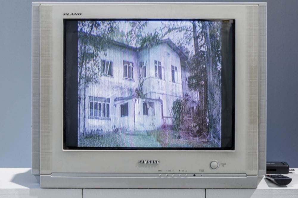 In general, Chew offers an invaluable counterpoint to Singapore’s techo-rationalist futuring and its penchant for deterministic urban masterplans. He does so by remediating lost architectural past/after-lives, not just to restore them but to ask what haunts our built environments. Dreams of Postmodern Ruins (2019) is a photographic installation of Singapore’s abandoned or demolished buildings mediated by a CRT TV (see Figure 1)—one that mourns for the creative destruction of built environments that have been dissolved into a collective amnesia. Creative destruction refers to the process whereby newer cityscapes replace outdated ones (Batty, 2007; Avrami, 2020), and tends to be construed as a key driver of economic growth and urban development by powerful stakeholders. Dreams of Postmodern Ruins is a video-loop of 33 high-contrast digital photographs rendered in false colour depicting brutalist facades and deserted corridors. Tinged with an air of melancholy, these imageries serve as evidence and elegy of modernist urban forms that have fallen out of favour. In this case, Chew mythologises (creative) destruction as a speculative and spectral surface where past ambitions and foreclosed futures converge.