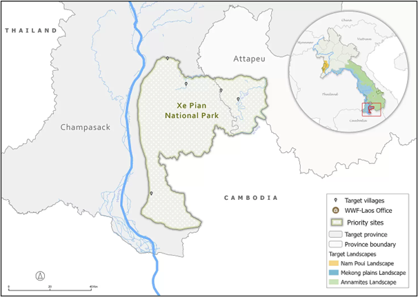 Located in Champasak province in southern Laos, the Xe Pian National Park is one of the top ten most biologically important protected areas in Southeast Asia (Images 1 and 2). Previously established as a National Protected Area in 1993, the area hosts large populations of elephants, cattle, deer, wild pigs, gibbons, and deer. It is the site of the “Reducing deforestation and carbon enhancement in the Xe Pian National Protected Area (NPA)” project (henceforth the Xe Pian REDD+ project), a nature-based climate mitigation project.