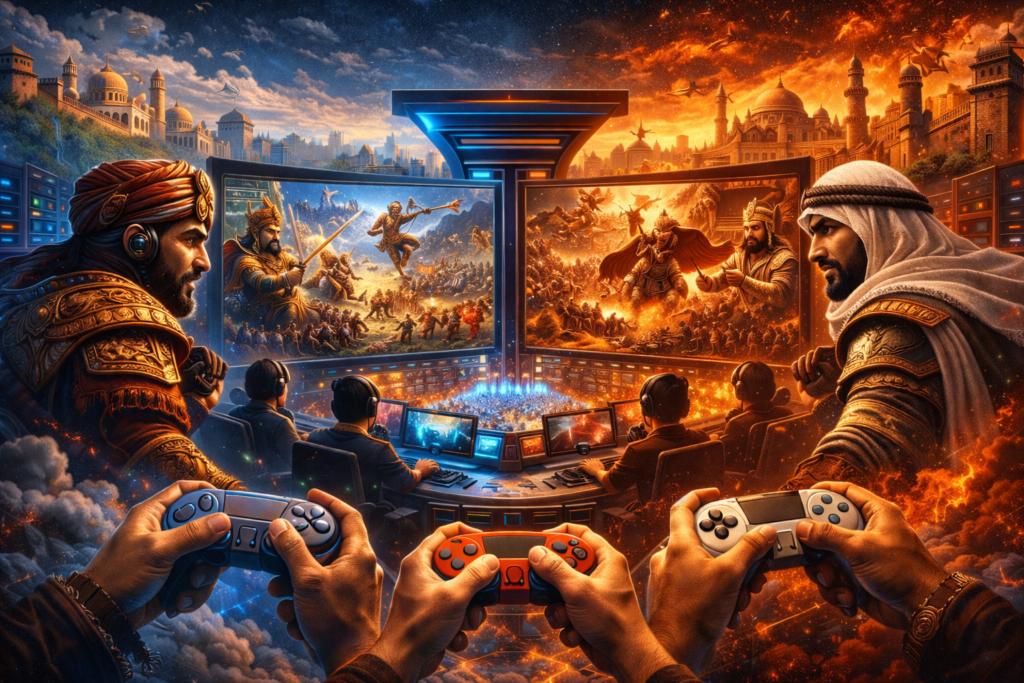 The tightening relationship between video gaming and nationalism has become increasingly apparent. From production pipelines and platform governance to localisation, streaming, esports, and fan communities, nearly every aspect of gaming is now read—and regulated—through national lenses. In 2024, for example, the award-winning Chinese video game Black Myth: Wukong became a cultural landmark, framed simultaneously as proof of China’s technological capacity, a celebration of national cultural heritage, and a showcase of market potential. In India, echoing Hindutva currents, a triple-A title The Age of Bhaarat is under development. In addition to directly developing local video-game industries, Saudi Arabia’s Public Investment Fund has taken major positions in global publishers and financed content such as Assassin’s Creed Mirage, including an AlUla expansion, leveraging games to revitalise UNESCO-listed heritage. More than serving as representations, these strategies of (re)imagining national pasts, presents, and futures within geo-cultural imaginaries, deeply entangled with real-world geopolitics, are embedded in socio-cultural practices such as streaming and in gaming infrastructures like player communities, where national forces and emotions are channelled.