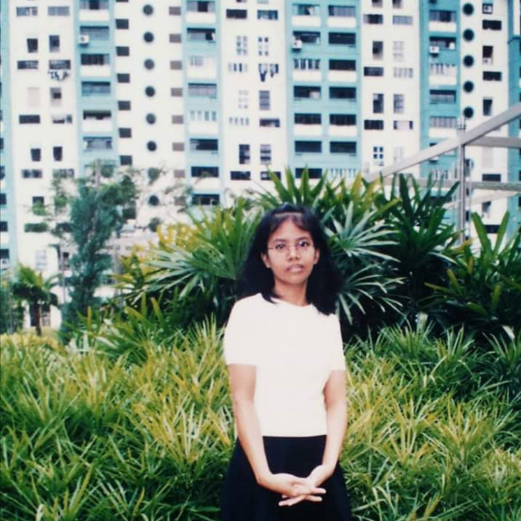 Taken in the early 2000s, mum stands in front of a housing complex on Singapore’s east coast.